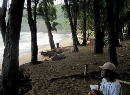 Noho ana no i ka 'olu I ka lau a'o ke paina. Alfred Alohikea (Hanalei Bay)